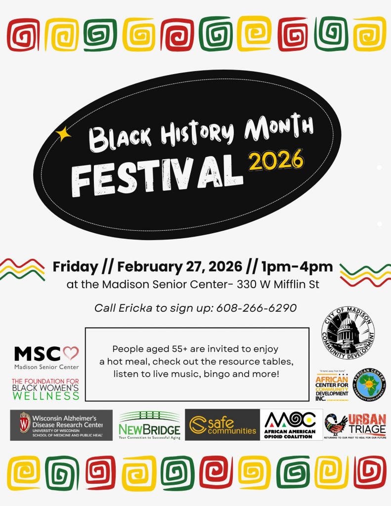 Join us for the second annual Black History Month Festival at the Madison Senior Center. This is going to be a joyful celebration of Black culture, heritage, and community for adults 55 and older.